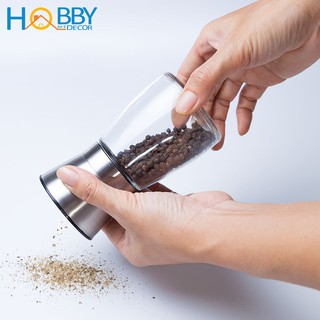 Lọ xay tiêu tay vặn HOBBY HOME DECOR XT - lọ thủy tinh và cối sứ viền Inox 304 không rỉ