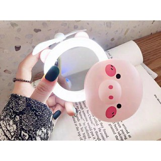 Quạt Mini Cầm Tay🍁FREESHIP🍁Quạt Mini Hình Con Lợn Có Gương Đèn (kèm sạc)
