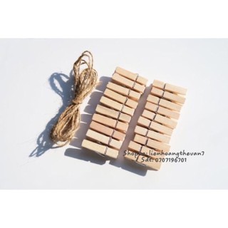 Set 10 kẹp gỗ treo ảnh trang trí (Kèm 2m dây thừng nhỏ)