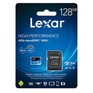 - Tên sản phẩm: Thẻ nhớ Lexar 512Gb / 256Gb / 128Gb 633x MicroSDHC UHS-I Class 10 A1 U3 100MB/s + Adapter